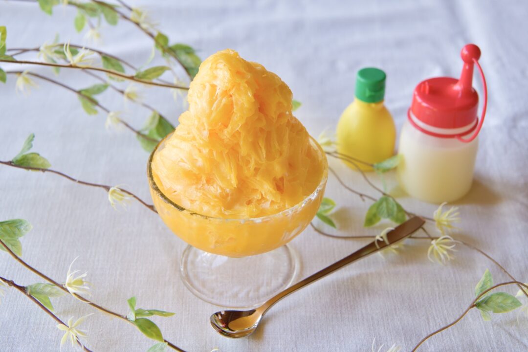 実はマンゴー農家直営の沖縄そば屋なので、「マンゴー100%のかき氷」が人気🍧