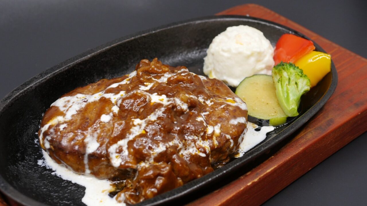 実際にロンドンの街を走っていたレトロなバスの中で、人気の「沖縄県産和牛ハンバーグ」や絶品「ビーフシチューオムライス」を是非!