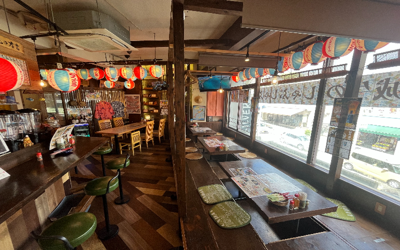 店内は温かみのある居心地の良い空間で、ゆったりと足を伸ばしてくつろげる掘りごたつ席は、お子様連れやグループ旅行にも最適です。カウンター席も9席あり、お一人様でもゆったりとお食事をお楽しみいただけます。